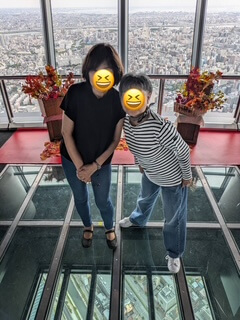 残念ながら富士山は見えなかったけれど、素晴らしい景色と、足元からガラス越しに見る地面は、卒倒しそうな迫力でした。